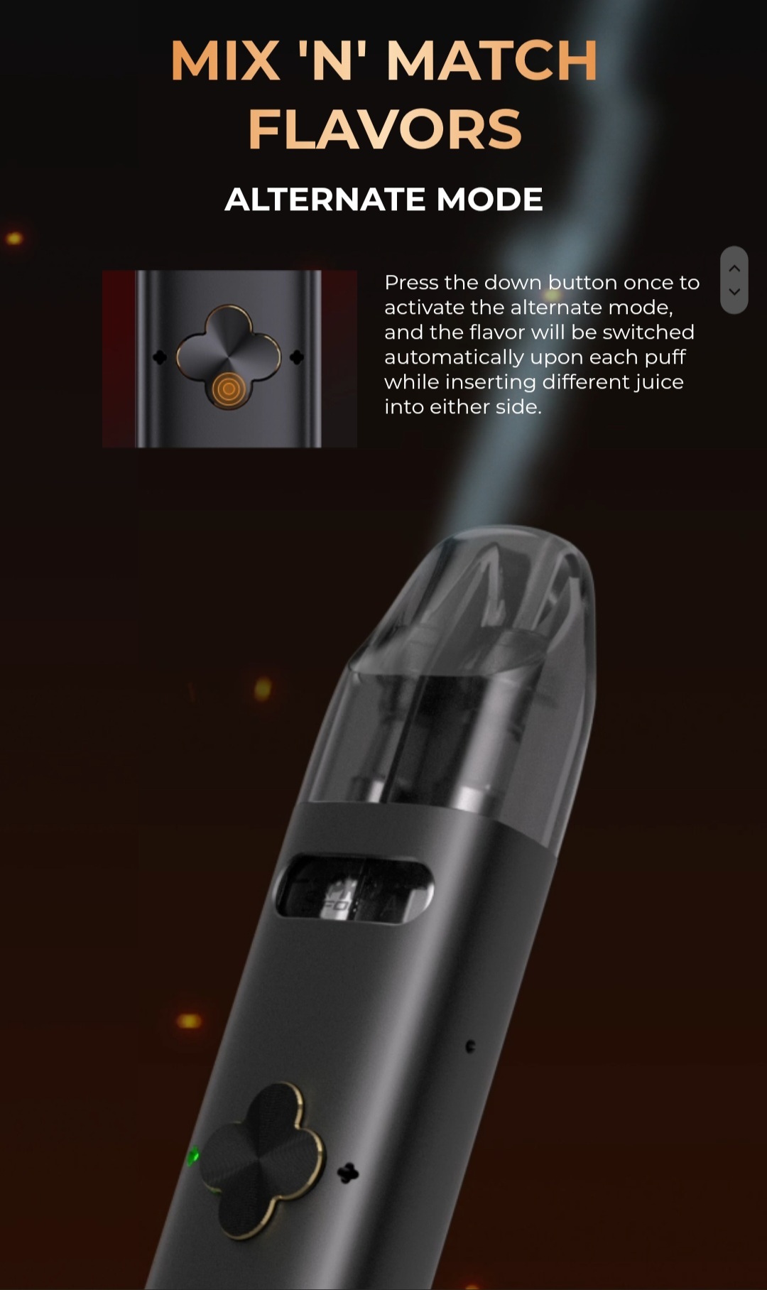 • 雙面煙彈:每面可儲存 2mL 液體,適合喜愛多樣化風味的玩家,減少頻繁更換煙彈的麻煩。